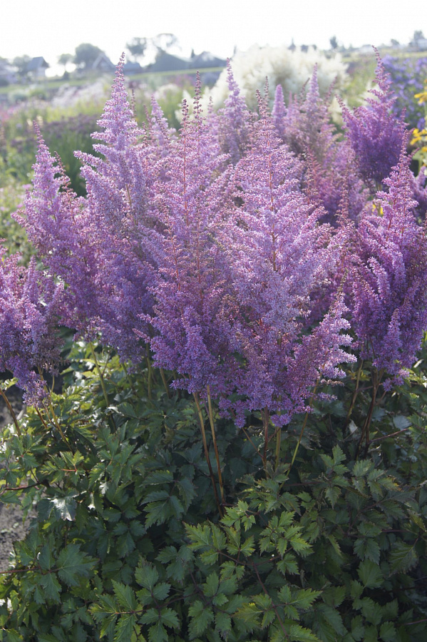 Рассада астильбы гибридной Mighty Phill позволит украсить сад одним из наиболее высокорослых сортов этого растения. Взрослые кусты вырастают до 100 сантиметров. Летом на длинных стебельках распускаются пышные сиренево-розовые соцветия-метелки, которые прекрасно смотрятся в составе букетов. Резные листья также имеют декоративный вид. Лучшим местом для расположения рассады астильбы гибридной Mighty Phill станет участок с легкой тенью, которая защитит нежную зелень от полуденного солнца. На одном месте кусты могут расти до 5 лет, после чего их необходимо разделять и рассаживать.