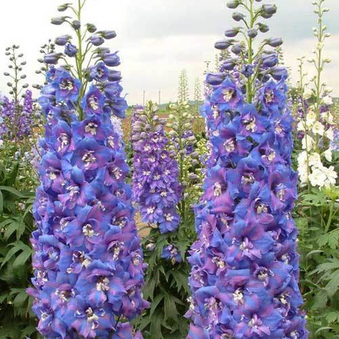 Семена дельфиниума Двуцветные звезды F2 прекрасно подходят для украшения садового участка. Для этого сорта характерна оригинальная сине-сиреневая окраска цветов. Цветение начинается в июне и длится до конца лета. Крупные плотные соцветия прекрасно смотрятся в срезке. Кусты применяются для оформления бордюров, миксбордеров, украшения участков возле беседок и скамеек. Посадив семена дельфиниума Двуцветные звезды F2, вы сможете вырастить эффектные кусты высотой до 120 сантиметров. Уход за растениями заключается в регулярных поливах, прополке и рыхлении почвы. На зиму надземную часть зелени следует обрезать на высоте 25-30 сантиметров.