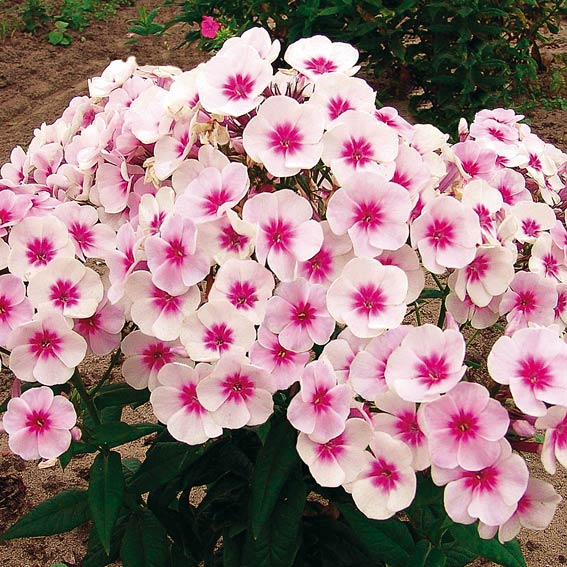 Рассада флоксов "Свизл Блу" (Swizzle Blue) - это низкорослый сорт с оригинальной расцветкой. Цветки — диаметром 3—4 см, трубчато-воронкообразные, с пятью лепестками, отогнутыми под прямым или почти прямым углом к трубке и образующими плоский венчик. Их уникальное сочетание цвета – белые лепестки с синими прожилками и ярко-розовым глазом позволяют занять многолетнику почетное место в саду. Стебли садовых флоксов голые, гладкие, реже покрыты коротким опушением. Сорт рассады флоксов "Свизл Блу" характеризуется обильным и продолжительным цветением,.