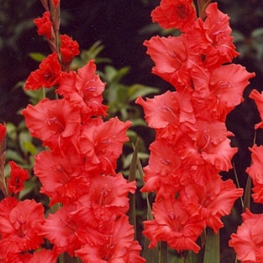 Луковицы гладиолуса гибридного Файер Раффл (Fire Ruffle) украсят ваш участок ярким оттенком цветущих бутонов. Растение эффектное, предназначено для высадки в открытом грунте на солнечных участках. Во время цветения требовательно к поливу. Высота этого сорта гладиолуса около 1 метра, средний диаметр цветка – 12 сантиметров. Бутоны яркие, насыщенного красного оттенка, видны издалека. Цветет долго, начиная с июня и заканчивая к сентябрю. Цветок идеально подходит для произрастания на клумбах, желательно на втором плане, чтобы не перебивать вид яркой расцветкой. Хорош в букетах.
