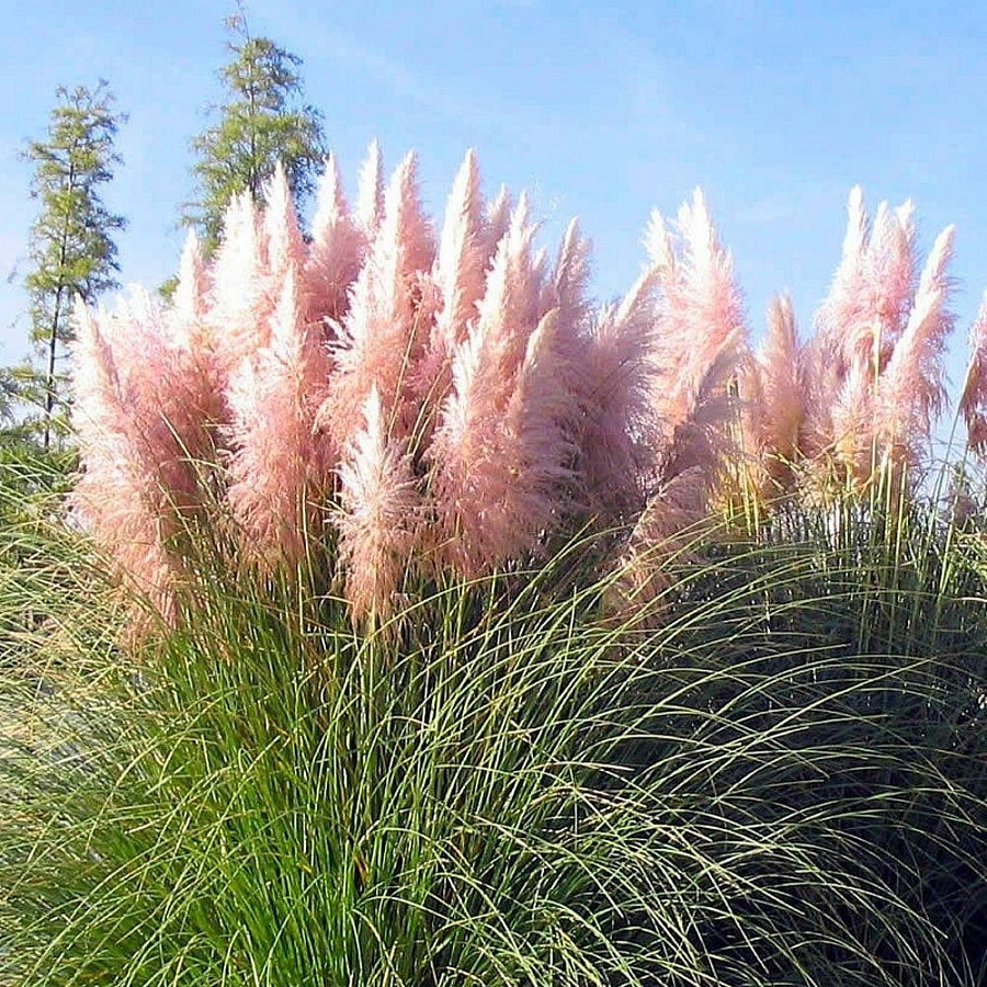 Семена и рассада кортадерии Селло Розеа (Rosea) быстро растут и превращаются в потрясающие декоративные злаки. Этот многолетник представляет собой высокий (до 200 см) куст, состоящий из прямостоящих зеленых стеблей, верхушки которых украшены пушистыми соцветиями. Особенностью сорта является необычный розовый оттенок метелок. Для посадки кортадерии следует выбирать хорошо освещенные участки, так как в тени растение теряет декоративность. Увядшие стебельки долго сохраняют эстетичность и подходят для составления сухих букетов. Растение не требует ухода и не нуждается в особых условиях.