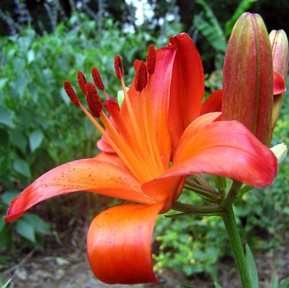 Окраска цветка : от оранжевых оснований лепестков до темно-бордовых пыльников