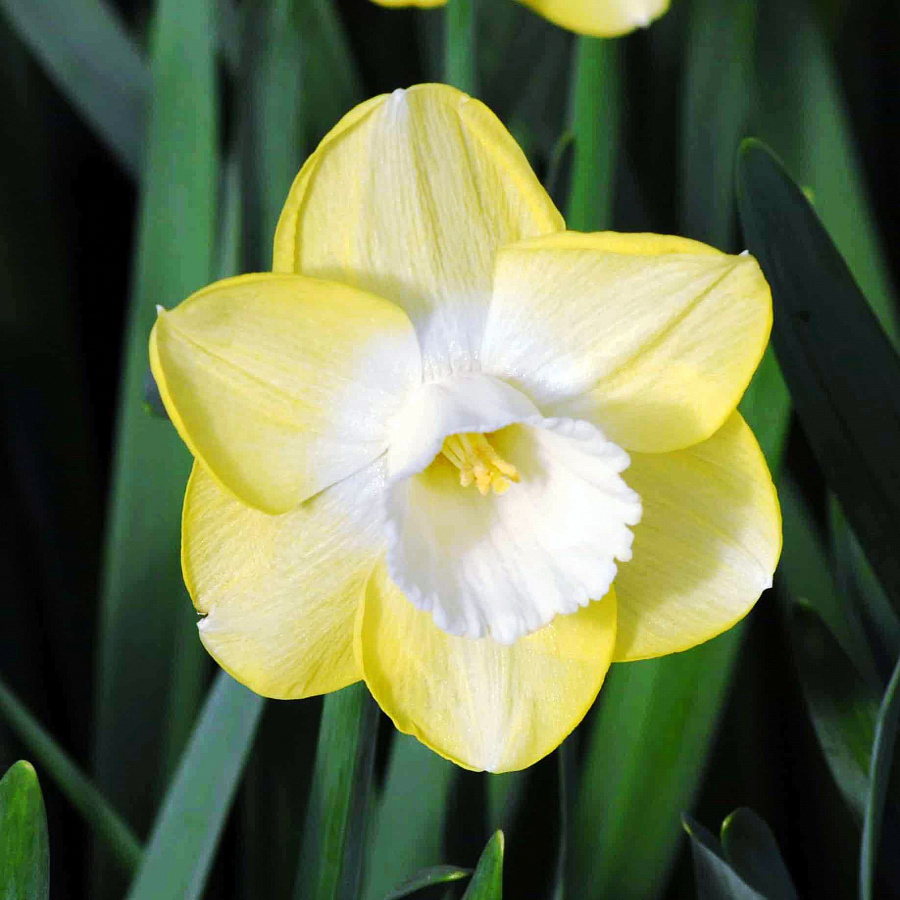Окраска цветка : лимонно-жёлтый с белой коронкой