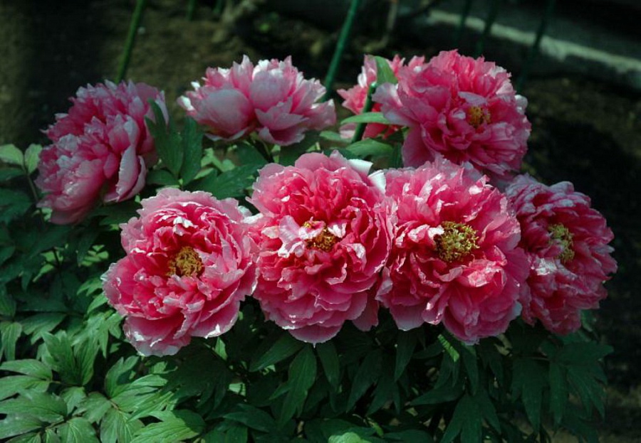 Саженцы пиона древовидного Герои (Paeonia Suffruticosa) можно полюбить уже только за невероятный аромат от распустившихся бутонов. Еще одно преимущество – морозостойкость. Пион предпочитает расти на солнечных участках и хорошо дренированном грунте. Кусты высокорослые и раскидистые, высота до 1,2 метров. Все растение усыпано крупными соцветиями. Цветки насыщенного розового оттенка, махровые. Лепестки – с серебристым отливом. Диаметр соцветий – от 13 до 15 сантиметров. Зацветают пионы в конце мая и цветут до июня. Продолжительность цветения небольшая, отцветают бутоны через две недели.