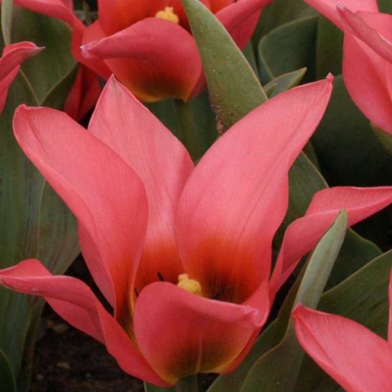 Луковицы тюльпана "Торонто" (Toronto) лучше высаживать группами по 5 и более штук на солнечном месте. Это один из лучших поздноцветущих сортов. Его цветки крупные с широким основанием, небольшим изгибом посередине и отогнутыми кончиками лепестков. Из одной луковицы образуются несколько невысоких, прочных цветоносов, собранных в один букет. Окраска лепестков розово-коралловая с темным основанием. Дно бокала округлое, светло-желтого цвета. Цветки имеют приятный аромат. Сорт прекрасно подходит для альпинариев, каменистых горок, для выращивания в контейнерах, а также для срезки.